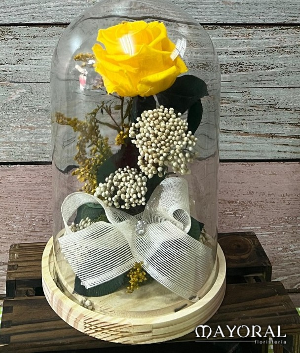 Cúpula con una rosa preservada color amarillo