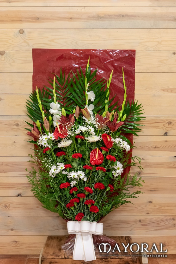 Ramo funerario de una cara en colores blancos y rojos. Pueden cambiar los colores.
