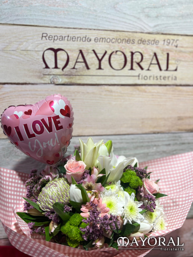 Ramo primaveral con globo I Love You.